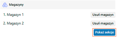 - Aby usunąć magazyn, w sekcji magazyny wybierz opcję "Usuń magazyn".
