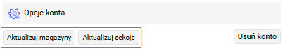 - Aby zaktualizować status, lub sekcje z panelu opcje konta, wybierz opcje "Aktualizuj magazyny" lub "Aktualizuj sekcje"