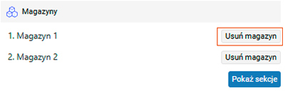 - Aby usunąć magazyn, w sekcji magazyny wybierz opcję "Usuń magazyn".