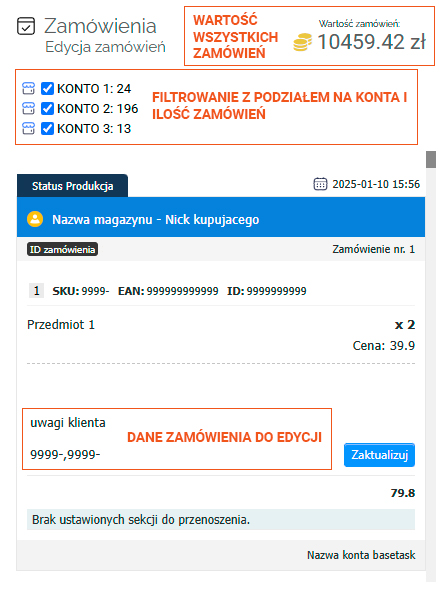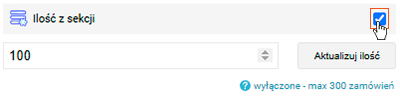- W przypadku wyłączonej opcji filtrowania ilości, pobierane jest max 300 zamówień na jedną sekcję.